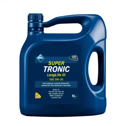 Масло Aral Super Tronic Longlife III 5w30 5L е 100 % синтетично моторно масло, което е предназначено за бензинови и дизелови двигатели с и без турбокомпресор, както и за автомобили с DPF филтър за твърди частици. То е подходящо за двигатели на VW/Audi с LongLife Service, и специално за R5- и V10 TDI във Phaeton и Touareg.