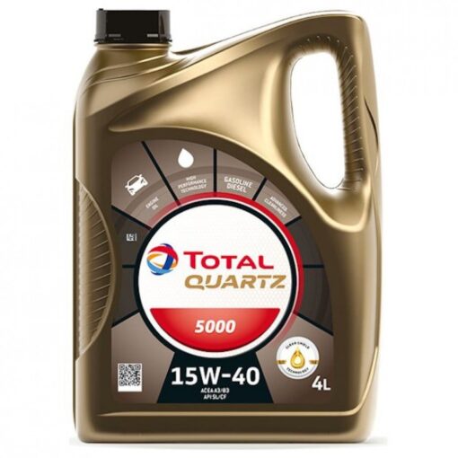 Масло TOTAL QUARTZ 5000 15W40 4L Френско оригинално, автомобилно моторно масло ТОТАЛ предназначено за по-стари или автомобилни двигатели на много километри бензинови и дизелови двигатели .