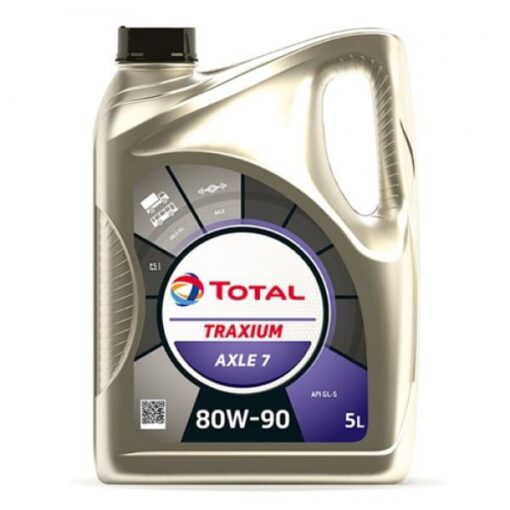 Трансмисионно масло TOTAL TRAXIUM AXLE 7 80W90 5L е минерално трансмисионно масло за екстремно налягане при тежко натоварени зъбни колела за скоростни кутии, при които се изисква API с ниво на изпълнение GL-5. Ефективно предпазва от износване и корозия, висока съвместимост с маслени филтри, много добра стабилност при работа благодарени е на високия вискозитетен индекс.