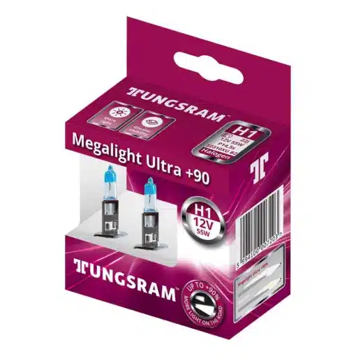 ungsram Megalight Ultra – премиум лампи имат допълнителни предимства по отношение на живот, цвят, устойчивост на вибрации или мощност и притежават повишена яркост.