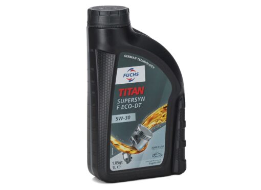 Масло FUCHS TITAN SUPERSYN F ECO-DT 5W30 1L е ултра високоефективно, изключително икономично горивно двигателно масло, особено подходящо за двигатели Ford DuraTorq-Diesel. Оптимално студено стартиране и по-нисък разход на масло.