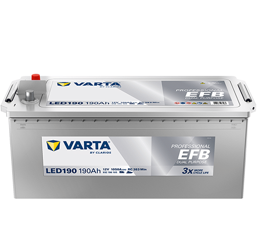 Акумулатор VARTA PROFESSIONAL EFB 932190105 190AH 1050A L+ . Уникалният VARTA® ProMotive EFB е мощен акумулатор за тежкотоварни автомобили, кемпери, каравани и лодки с високи енергийни изисквания. Неговата ефективност се съчетава с висока устойчивост на вибрации, за да осигури абсолютна надеждност и по-дълъг живот. Този акумулатор за камиони е разработен да отговори на повишаващите се нужди на богато оборудвани хотелски функции